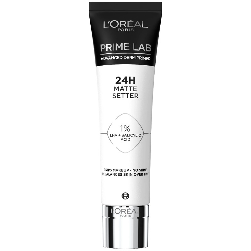 L'Oréal Paris Prime Lab Advanced Derm Primer 24H Matte Setter er en fantastisk primer, som både øjeblikkeligt og langvarigt modvirker skinnende hud. Denne primer er beriget med 1% LHA og salicylsyre, som hjælper med at give huden et mat look i op til