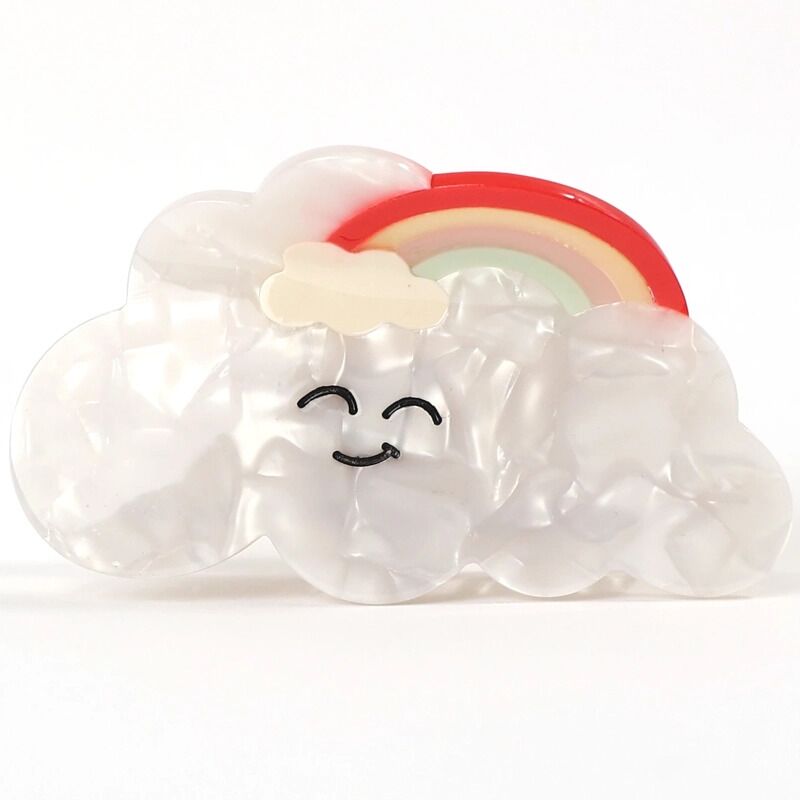 NICMA Styling Happy Sky – Medium er en super sød og smuk hårklemme, i en flot hvid farve med perlemorseffekt. Klemmen er formet som en lille sky, med en regnbue og en smiley i midten, der helt sikkert vil bringe et smil frem på dine egne eller dine omgi