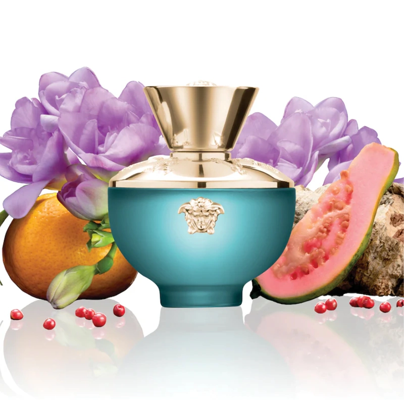 Versace Dylan Turquoise Pour Femme blev lanceret i 2020 og er skabt af parfumøren Sophie Labbé. Duften er tænkt som en olfaktorisk rejse til de græske øer – en kombination af salt havluft, solkyssede blomster og bløde frugter.